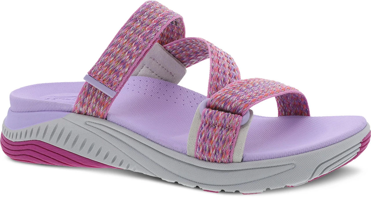 Englin’s Fine Footwear presents the women’s ‘Rosette’ from Dansko. Walk all day and all night in the Rosette sandal. This sandal incorporates the performance outsole of the popular Pace and Penni sneakers, so you can walk the extra mile. An open back sandal that is constructed from recycled webbings with multiple points of hook and loop adjustability, Rosette also features an energy return EVA footbed with Dansko Natural Arch technology for added support, a Propel forepart, a lightweight EVA midsole, and a high abrasion rubber outsole.