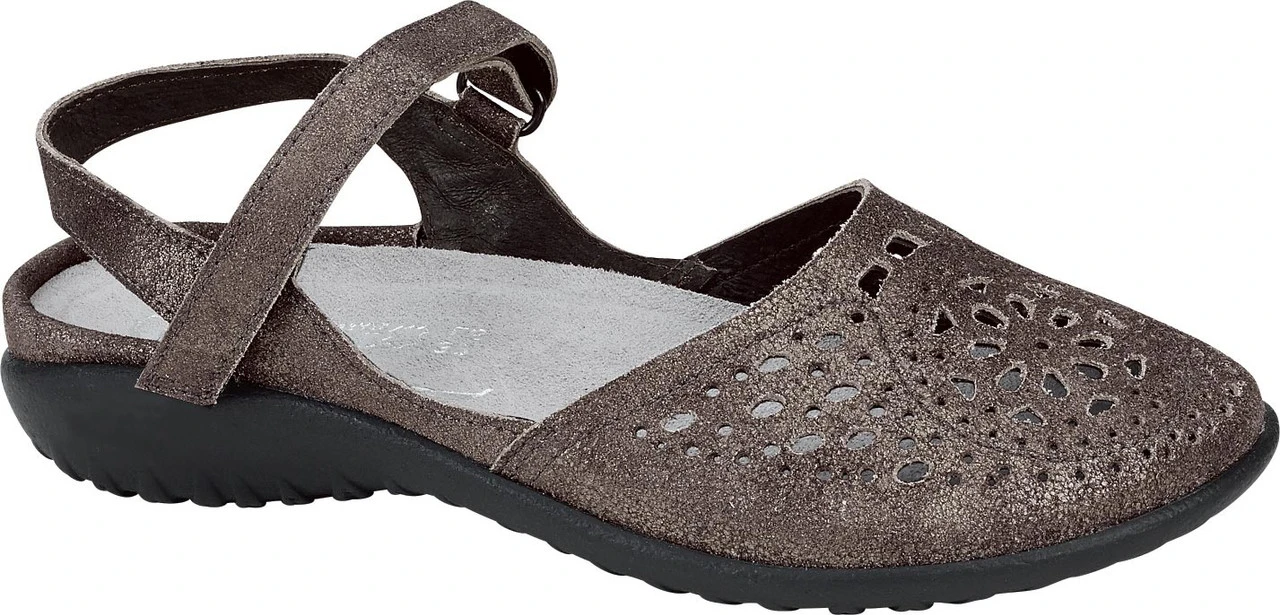 Englin’s Fine Footwear presents the ‘Arataki’ from Naot. The Arataki is a closed toe sling back shoe with unique cutout designs. This style has a hook and loop closure at the instep. Naot’s removable, anatomic cork & latex footbed is wrapped in pampering suede and molds to the shape of the foot with wear. The Koru Collection features a 1″ polyurethane sole which is extremely lightweight, durable & slip resistant. This collection uses a hand-sewn strobel construction making it strong and extremely flexible.