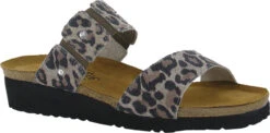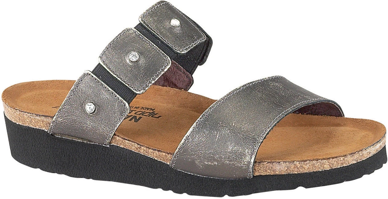 Englin’s Fine Footwear presents the women’s ‘Ashley’ from Naot. Gracefully feminine, the Naot Ashley is a gorgeous slide with comfort features you’ll adore. With uppers in a variety of textured, patent, and rich matte leathers detailed with delicate rhinestones, the Ashley is stylish and sophisticated, versatile enough to pair with summer dresses or casual shorts and tees. You will appreciate the elastic goring on the second strap, which allows it to fit your foot’s unique shape. The Ashley also boasts the anatomically contoured cork footbed that makes Naot shoes so incredibly comfortable. This footbed, made of natural cork, latex, and soft suede, molds to the unique shape of your foot over time, so your Naot sandals feel as if they were made just for you. No matter where you go, when you walk in the Ashley, you’ll feel as if you are barefoot in the sand, with the sun on your face and the ocean breeze in your hair.