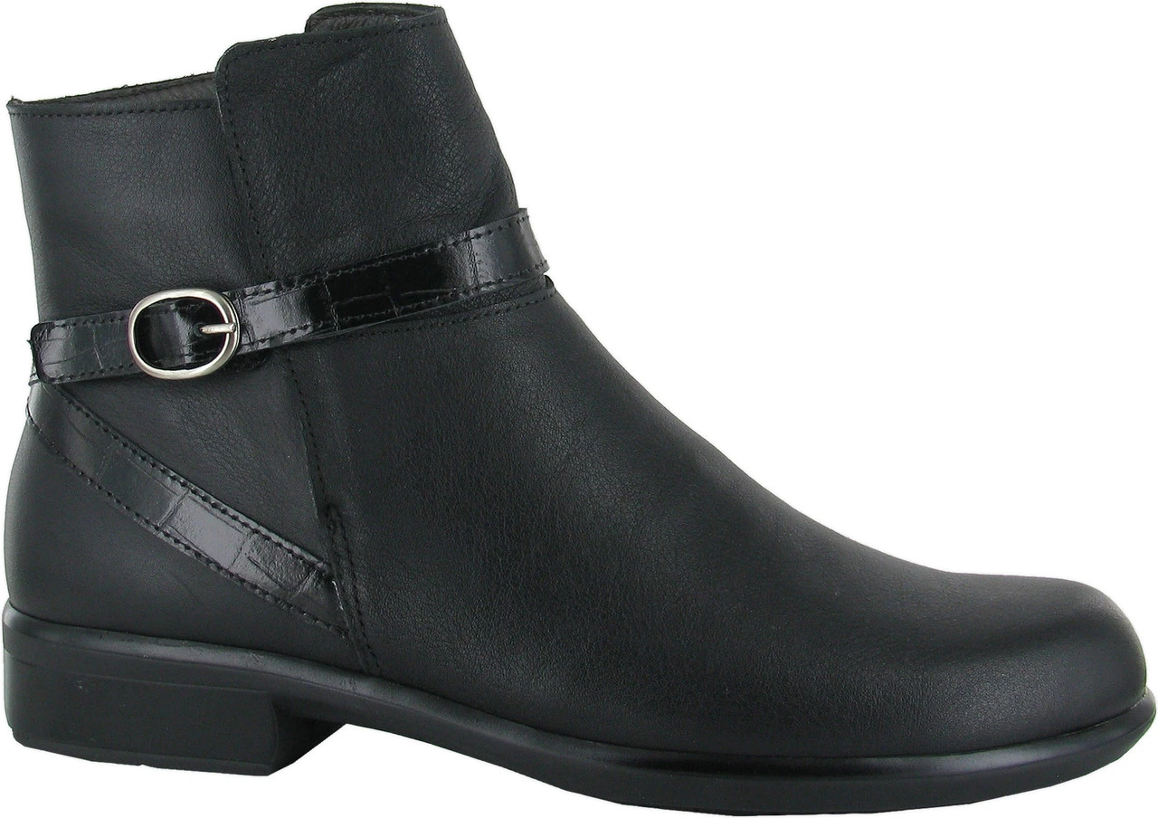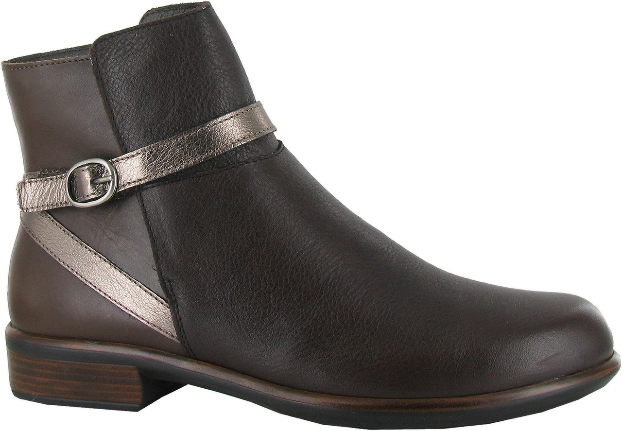 Englin’s Fine Footwear presents the women’s ‘Briza’ from Naot. The Briza is an everyday ankle boot with a faux buckle accent. The Briza comes with Naot’s removable, anatomic cork & latex footbed for all day comfort. The Aura Collection features a 1.5″ polyurethane sole with a metal shank which is extremely lightweight, durable & abrasive to prevent slipping. This collection uses a hand-sewn Strobel construction making it strong and extremely flexible.