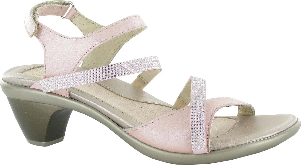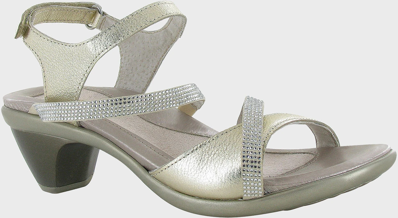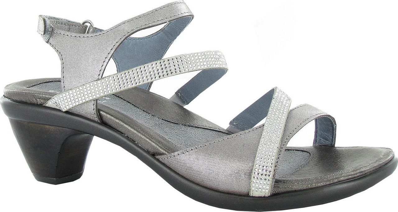 Englin’s Fine Footwear presents the women’s ‘Innovate’ from Naot. The Innovate is the perfect backstrap heel for all of your festive events! This sandal has a hook & loop backstrap & gore at the middle straps creating a custom fit. The Innovate has a padded front strap for ultimate comfort. The feminine rhinestone accents make this shoe stand out from the crowd. Naot’s anatomic cork & latex footbed is wrapped in leather with a microfiber center to prevent slipping and molds to the shape of the foot with wear. The Avantgarde Collection features a TPR sole with a metal shank. This sole offers the look of a 2″ heel without the feel.