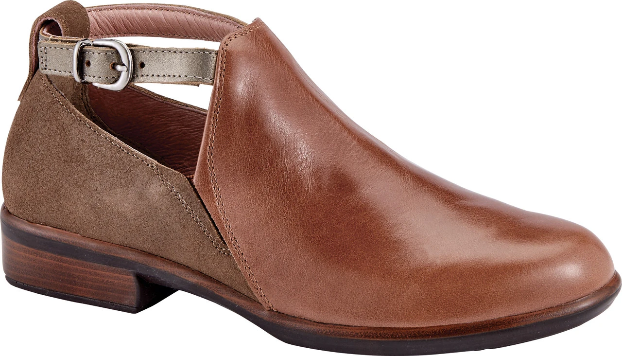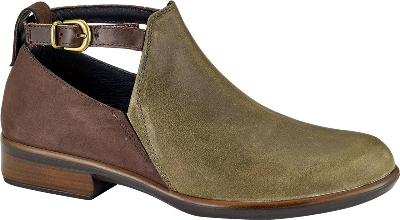 Englin’s Fine Footwear presents the women’s ‘Kamsin’ from Naot. With its rich, contrasting colors, the Kasmin has a special fall feel. The Kasmin’s simple yet elegant design of a bootie with an upper strap ensures you look fashionable and feel comfortable at any occasion. The Kasmin contains Naot’s removable, anatomic cork & latex footbed is wrapped in microfiber & leather and molds to the shape of the foot with wear. The Aura Collection features a 1.5″ polyurethane sole with a metal shank which is extremely lightweight, durable & abrasive to prevent slipping. This collection uses a hand-sewn stroble construction making it strong and extremely flexible.