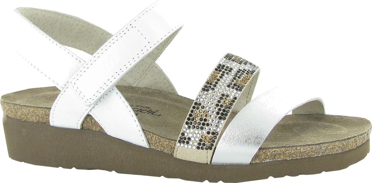 Englin’s Fine Footwear presents the women’s ‘Krista’ from Naot. The Krista is a three-strap sandal with a hook & loop strap at the instep and a backstrap for added stability and support. The Krista has gore at the middle strap for adjustability. This style features a studded strap to give it a dressier look. Naot’s anatomic cork & latex footbed is wrapped in a pampering suede and molds to the shape of the foot with wear.