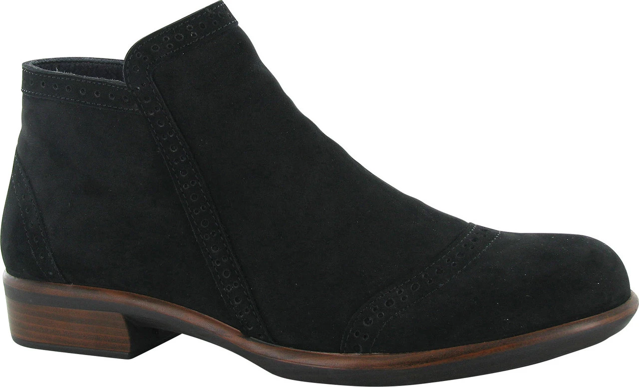 Englin’s Fine Footwear presents the women’s ‘Nefasi’ from Naot. Masculine meets feminine charm with the Nefasi. A timeless staple of Fall, oxford style preforation detailing on this ankle boot gets a modern twist with an offering of seasonal colors. The Nefasi contains a removable cork/ latex footbed covered in microfiber & leather for a true comfort experience. Say yes to the menswear trend this fall with the charm appeal of the Nefasi!
