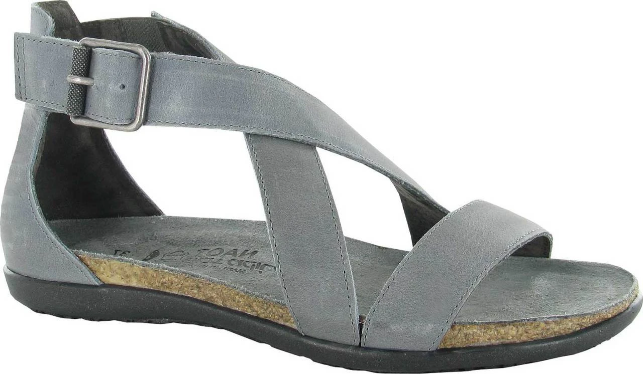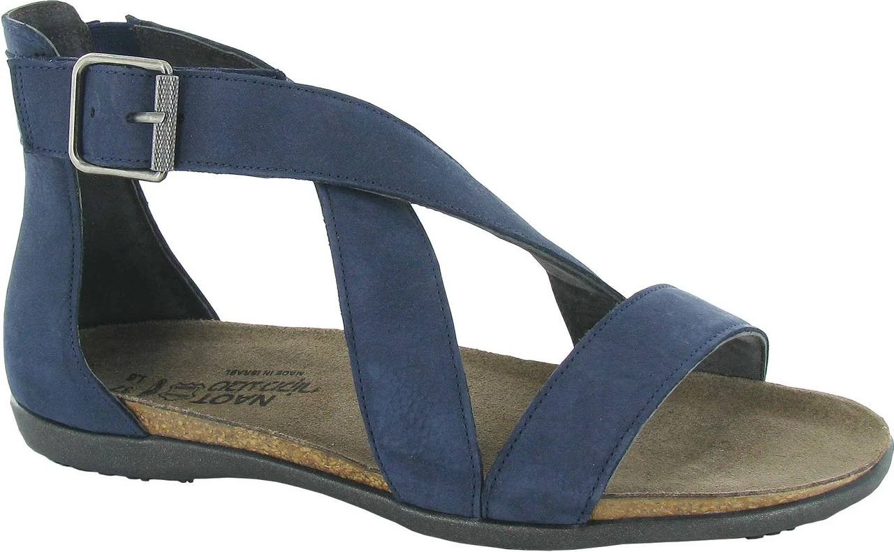 Englin’s Fine Footwear presents the women’s ‘Rianna’ from Naot. The Rianna is a fashionable sandal with a padded upper. This style has a padded heel cup for comfort & a faux buckle hook & loop closure with gore at the instep for adjustability. Naot’s anatomic cork & latex footbed is wrapped in a pampering suede and molds to the shape of the foot with wear. The Flat Elegant Collection features a .75″ TPR sole.