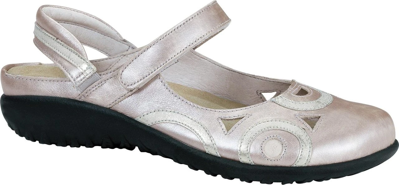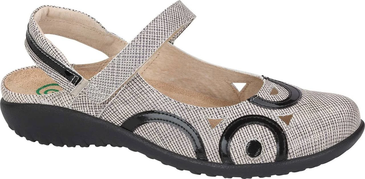 Englin’s Fine Footwear presents the ‘Rongo’ from Naot. The Rongo is a fashion triple threat with a chic slingback design, mary jane strap across the top, and unique contrasting details on the upper. The padded slingback strap allows you to easily slip the Rongo on and off, and the hook-and-loop closure at the instep offers added convenience and adjustability. Fashionable and intriguing to the eye, the Naot Rongo is a perfect style choice, but the incredible comfort features make this cute shoe a true gem. All Naot sandals and shoes, including the Rongo, have an ergonomically contoured footbed that offers luxurious comfort and support. This footbed is made from natural cork, latex, and suede, which creates an environment of flexibility and shock absorption. The cork in Naot footbeds is pliable enough to mold to the foot after some wear, so your Naot shoes will feel as if they are custom-made to fit your feet.