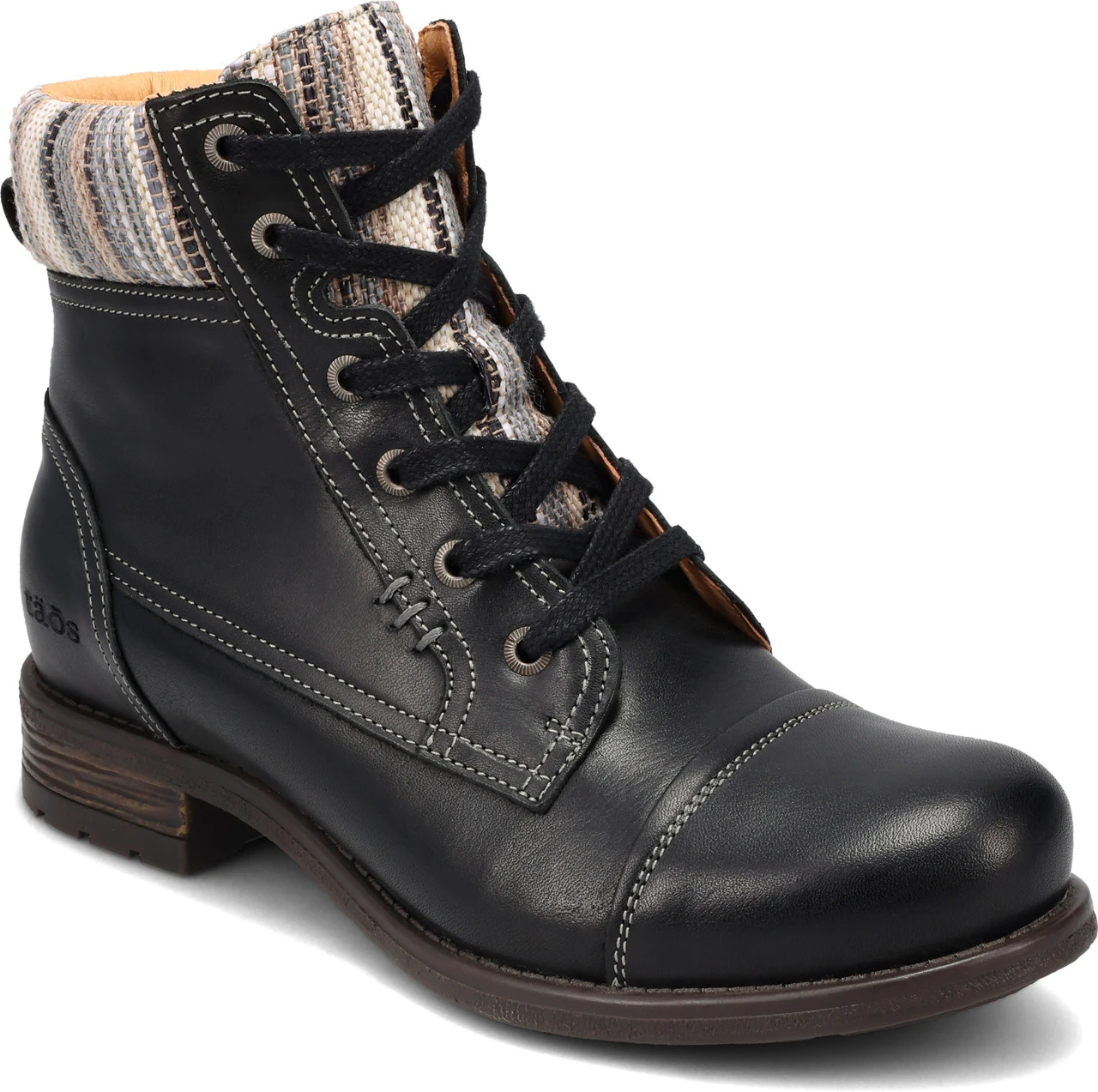 Englin’s Fine Footwear presents the women’s ‘Captain’ from Taos. Captain is a new European cap toe boot from Portugal that has a distinct look with rich leather uppers & woven textile trim. Lace up adjustability along with an inside zipper, make these easy on/easy off. The ultimate footbed that is leather covered dual density polyurethane with arch & metatarsal support for all day comfort. the durable, flexible rubber outsole provides stability as well as durability for all of the places Captain will take you.