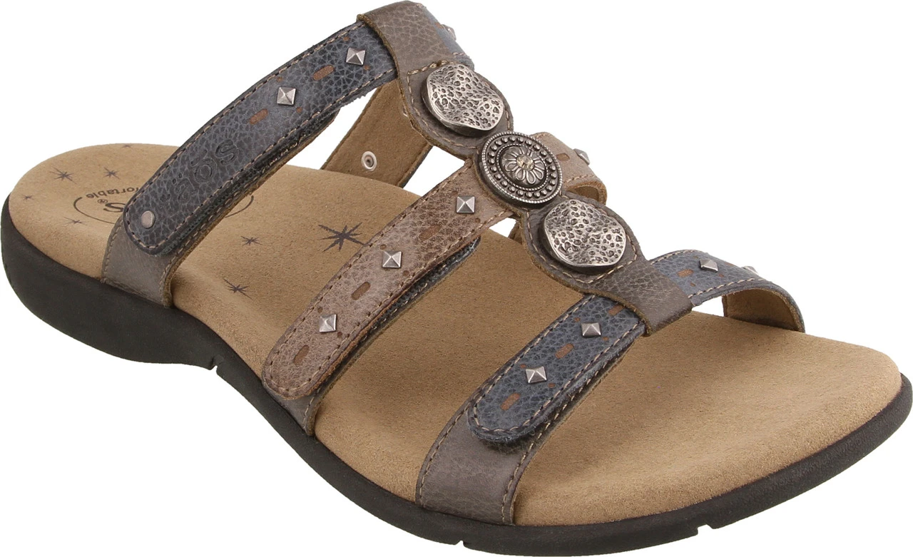 Englin’s Fine Footwear presents the women’s ‘Festive’ from Taos. The Taos Festive features an updated signature look with metal hardware and laser etchings. Featuring their Soft Support™ premium footbed with arch and metatarsal support to give your feet the comfort they need. Easily adjust all 3 straps for a more custom fit. The rubber outsole is durable and noticeably lighter to take you wherever you need to go.